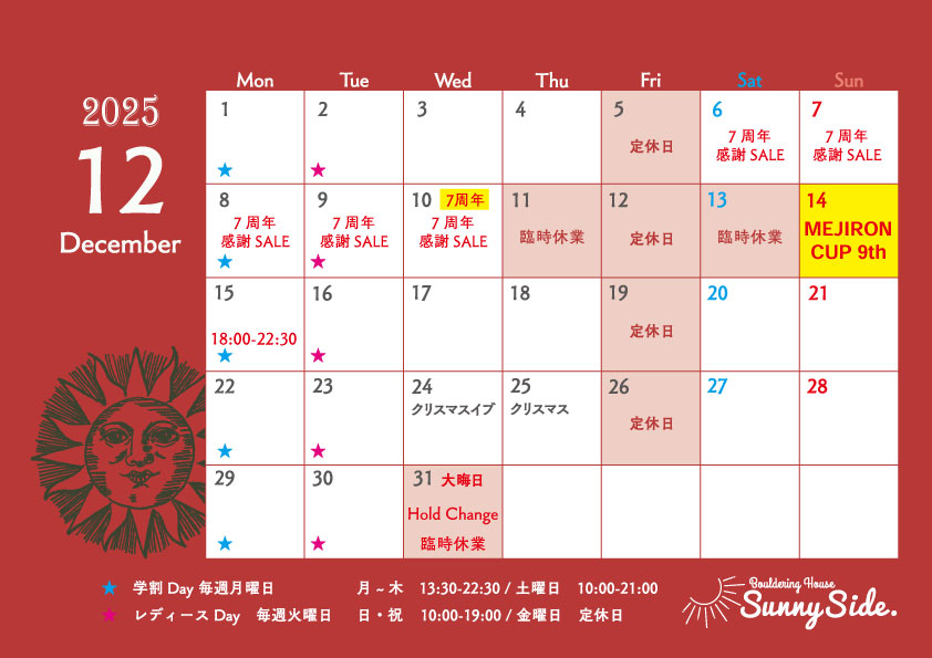 12月はイベント盛りだくさんで営業日や営業時間が不規則なのでカレンダーをご確認ください!